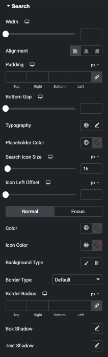 Additionaly you can manage Color, Background, Border and Box Shadow for Normal and Hover.