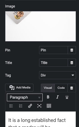 In Content, You can Manage Image, Pin, Title with Tag, Description, Button, and Box Link with Minimum Height of Banner.