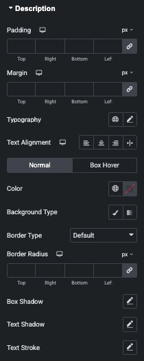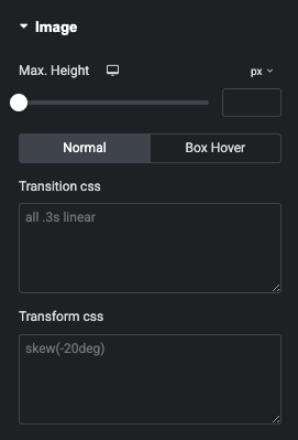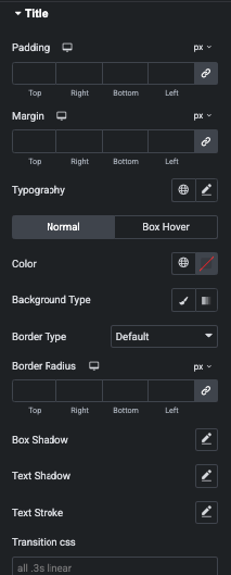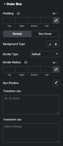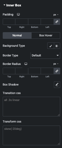 Also, You can manage Color, Background, Border, Shadow, Transition and Transform CSS Effect for Normal, Hover and Box Hover State.