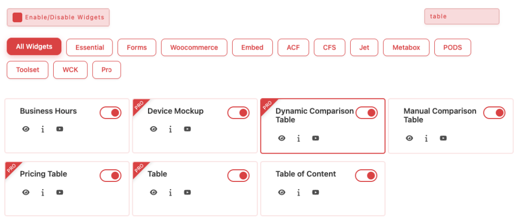 Essential Classy Tab from Dashboad -> Widgets then enable Dynamic Comparison Table Widget