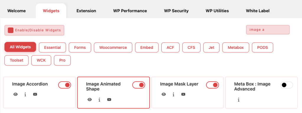 Essential Classy Tab from Dashboad -> Widgets then enable Image Animated Shape Widget
