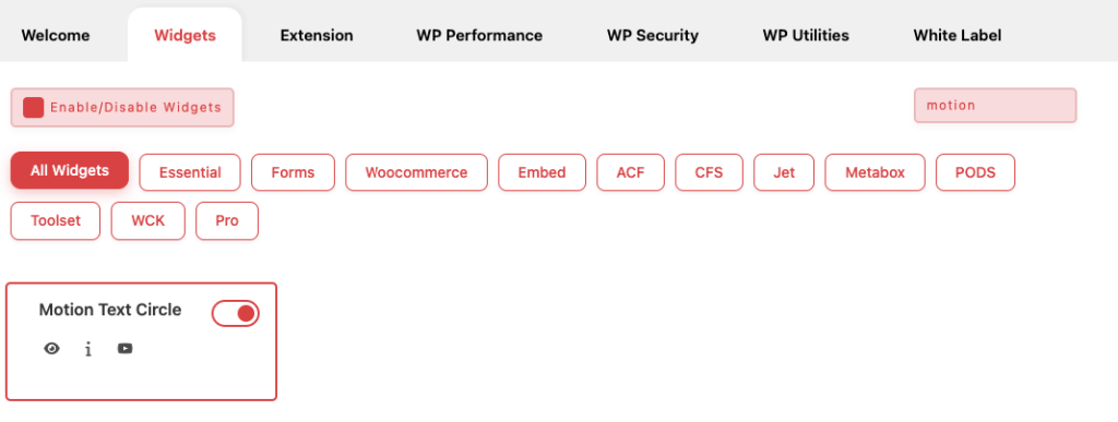 Essential Classy Tab from Dashboad -> Widgets then enable Motion Text Circle Widget