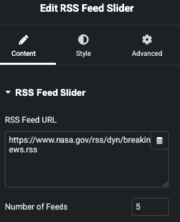 Enter RSS Feed URL and Manage Display Posts number